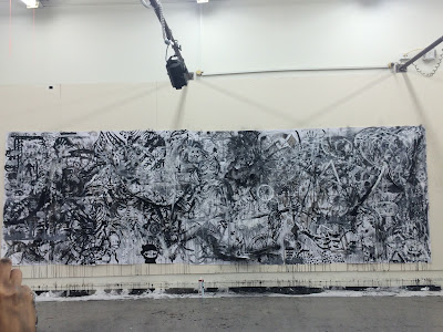 I then went one step further and created multiple layers of a GLSL noise warp shader (the thing that warps everything a a bit) at different frequencies, this gives the video a kid of inkblotty effect that I really like and so I've included this in my global bank of shader combinations and fx. I've linked a video of this effect at the bottom.
